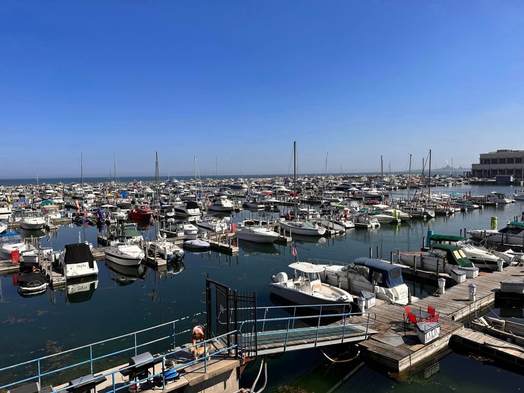 So, it’s not the best for that, but that does mean Jazzy is getting in some long walks. There is a beach also so Jazzy can chase wavers. We pretty much walk wherever we want to go which I love. So far, we’ve done over 7 miles each day between walking the dog and exploring on our own. We accidentally took Jazzy on a 3+ mile walk on Saturday, and when we got back to the marina office area, she just laid down in the grass to take a break. That has never happened before. But, I think I’m getting ahead of myself. Let’s back up and start with our trip/voyage/passage from Kenosha to Hammond.
