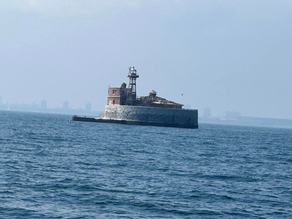 It was also hard to get a good shot of the water cribs we passed, but I did my best. What the heck is a water crib, you ask? I asked that same question! For what it’s worth, Wikipedia says “Water cribs are offshore structures that collect water from close to the bottom of a lake to supply a pumping station onshore. The name crib is derived from the function of the structure—to surround and protect the intake shaft.” The pics are below with a link for better pics and photos of each if you are interested in learning more ![]()