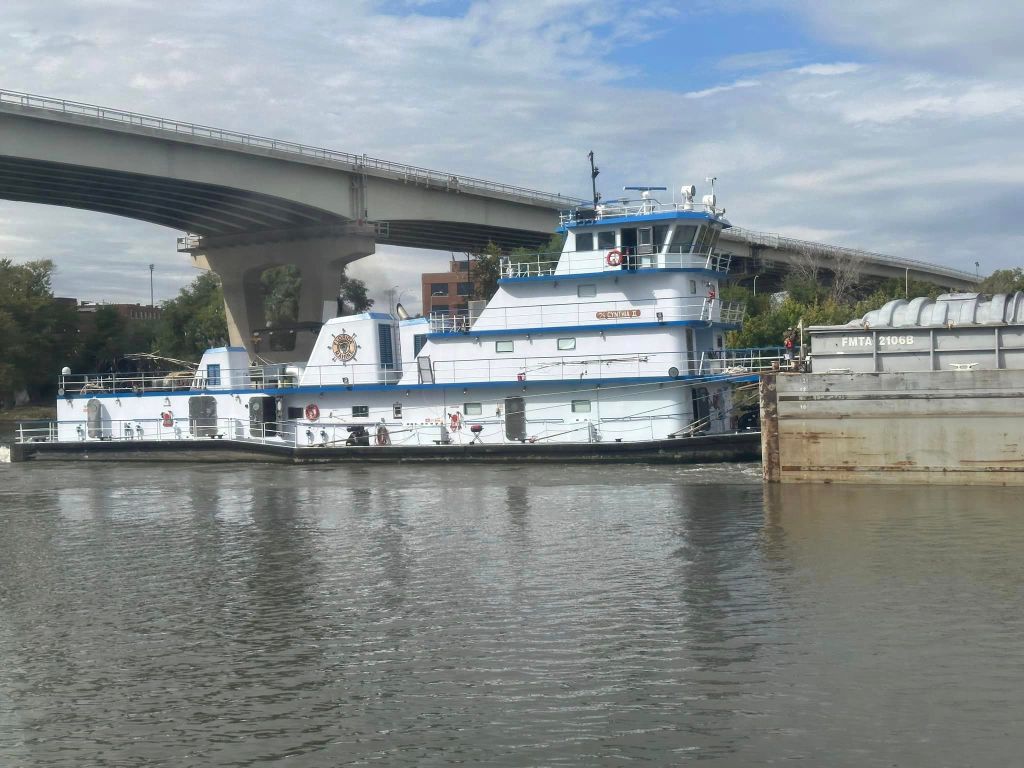 First, we must lock through Starved Rock Lock in Ottawa, IL; just downriver from Heritage Harbor. We had a little bit of a wait but not real long. We rafted four wide in this lock, and we were the 3rd boat. This would have been the easiest one yet. As a matter of fact, when we were rafting up, I was asked if I was having fun yet, and I genuinely said, “Yes, today I am!” However, when we were quite a ways down the wall, the courtesy line broke (see pic of what I’m talking about below). This meant the lead boat had nothing to hold their bow in place, causing the bow to move away from the wall and the stern into the wall. Fortunately, the boat on the outside of our raft had thrusters. So the captain of the 1st boat relayed instructions to the first mate on the bow who then relayed the message to us, and we relayed to the captain of the 4th boat. Disaster avoided, and we all got out safe. Praise the Lord! Yes, THAT was TERRIFYING, but my tolerance for terrifying might be slightly better than yesterday. ![]()