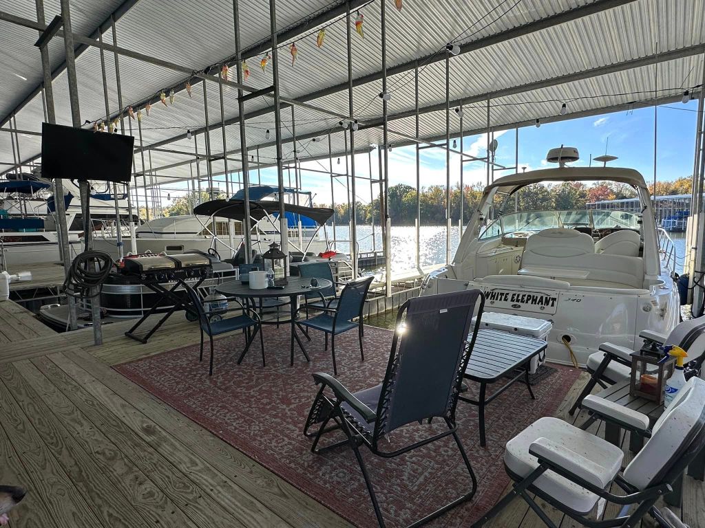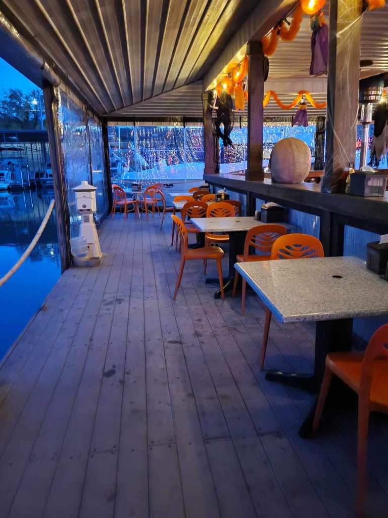 So w.e have found that in some places people extend the dock behind their boat and then turn this area into a cozy hang out spot – see next pic