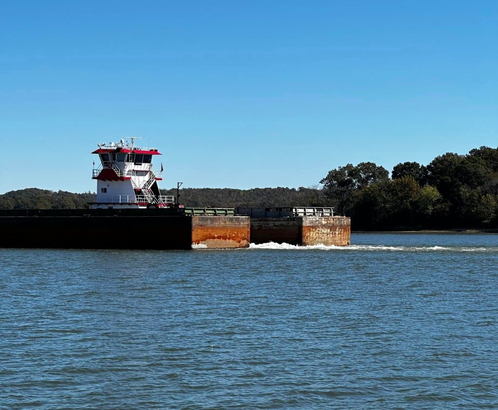 I know ‘another barge/tow pic 🙄’ but this is interesting because the tow is between the barges instead of behind. Just thought I’d share that.