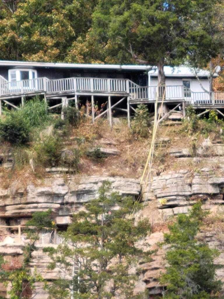 See that yellow rope? Some guy was actually at the bottom of that rope heading over to the ladder you can kind of see through the trees. I wonder what he was doing, and I hope he gets paid a lot of money to do it.