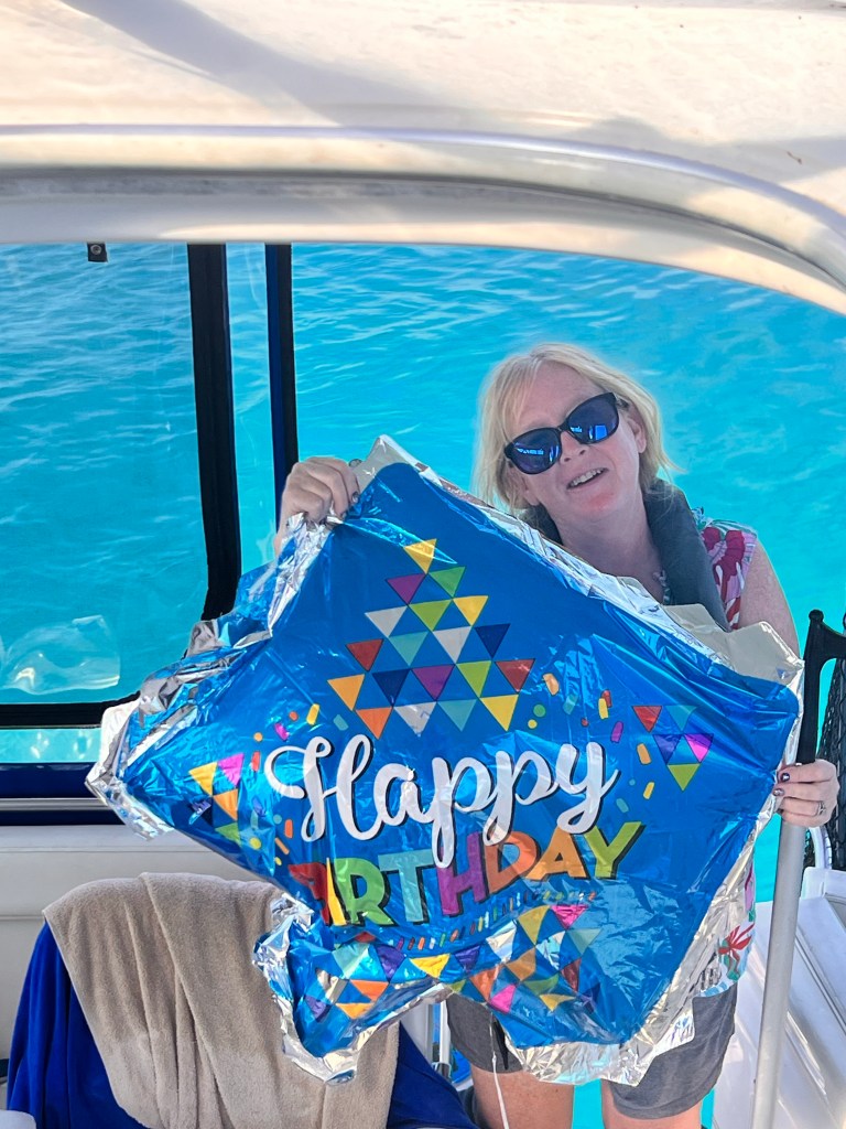 On the way we did make two short stops and detours. One was to pick up a mylar ballon. It says Happy Birthday. We will hang that out on Christmas for Jesus! The other stop was to pick up what we thought was a big plastic jug of garbage. It turned out to be a good-sized fender. If you’re on a boat, you can never have enough fenders! That’s what I say at least!! This is our third fender we have found so far. I think one more and we will have picked up the number we have lost over the years!! These fenders are not the same size and one is really a good size for the dinghy. We do get some enjoyment in picking up crap out of the water; so, we will continue to do it.