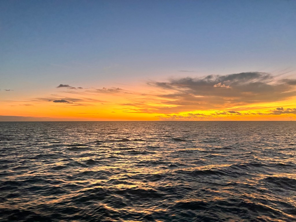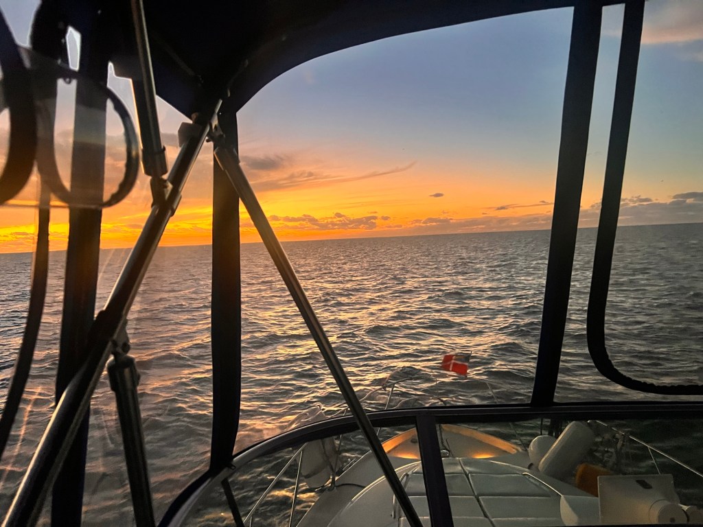 I estimated our locations to be able to check the weather forecasts and I was pretty spot on where we would be at what time. The first couple of hours on the Mackie Shoals was “rollier” than expected. But, when we turned a little more west the waves and swell were not nearly as bad. Rita was able to get a couple of hours of sleep.